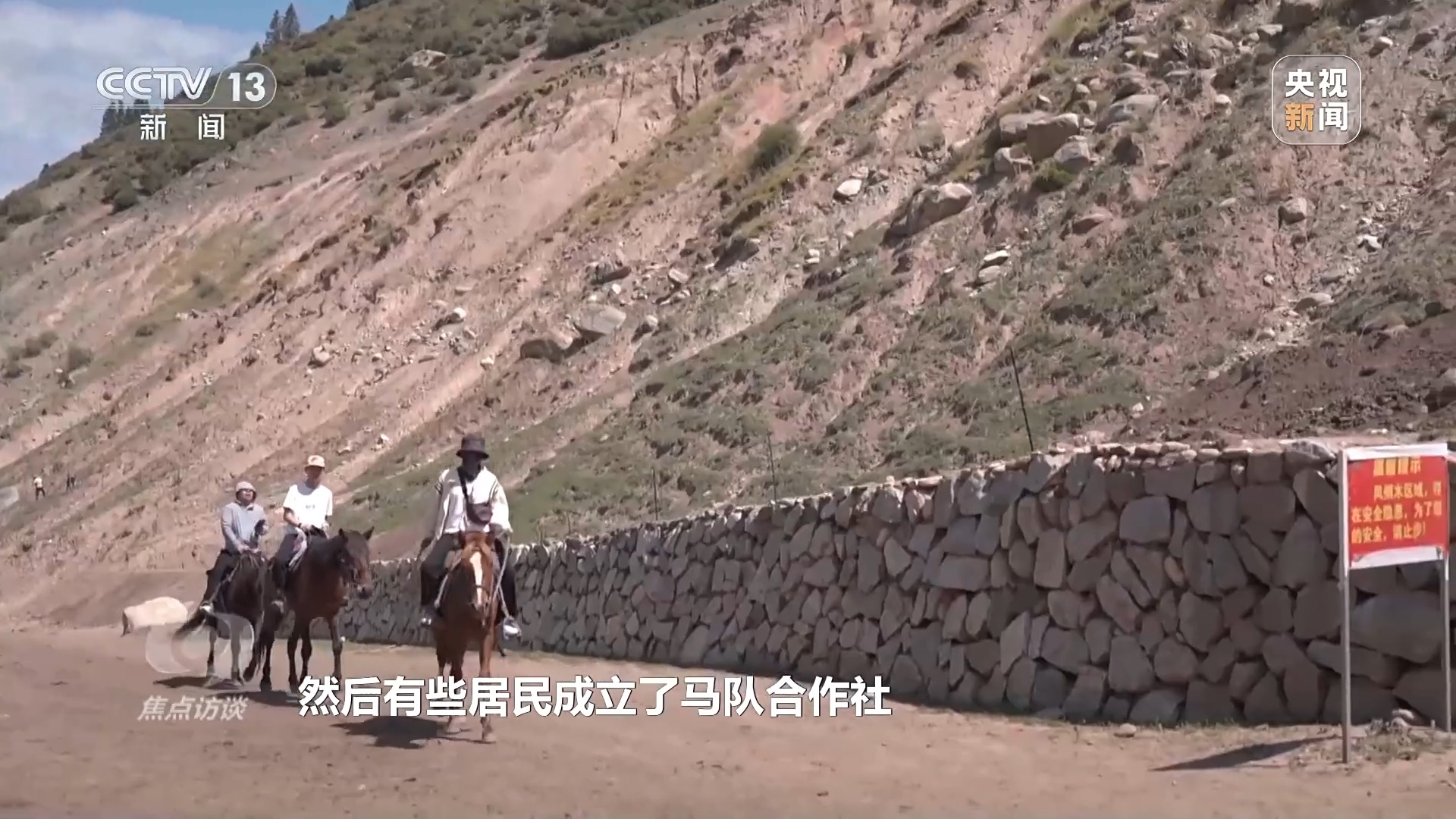 当时,当地政府发现,一些徒步爱好者来到这里穿越古道、体验生活,牧民们接待这些游客有了少许收入,这让他们看到了发展的另一种可能。当地利用旅游业作为抓手,开始了琼库什台的脱贫攻坚,慢慢地,村里通了自来水、有了稳定的电,许多牧民也开始改建自己的小木屋和毡房,迎接更多的客人。