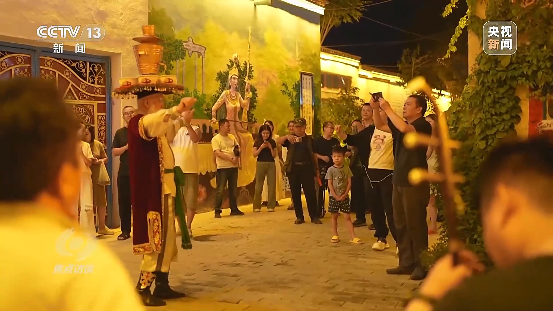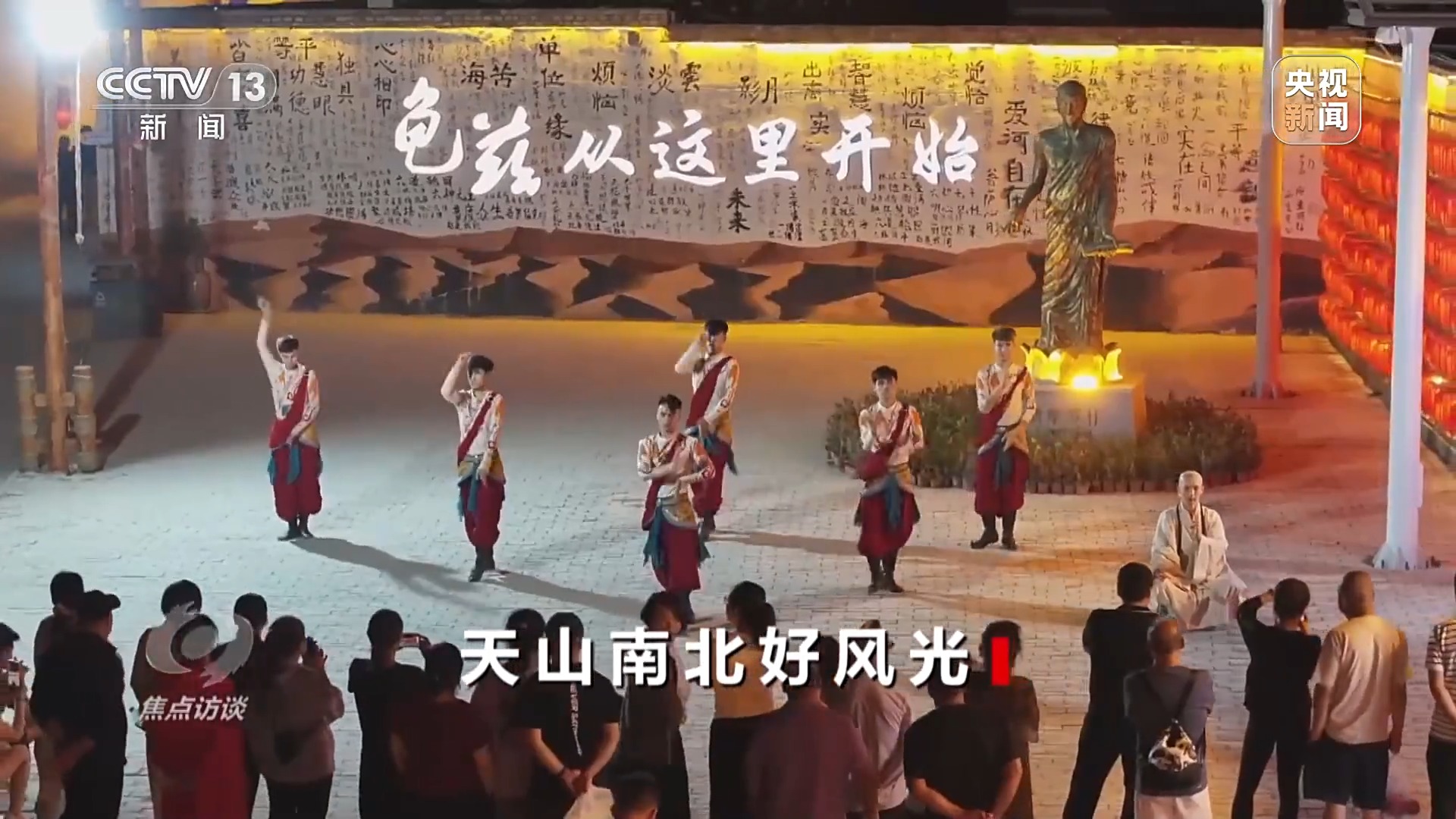 维吾尔族传统舞蹈起了头,夜晚的百年老巷就成了一条歌舞之巷,从高僧鸠摩罗什翻译佛经的演绎,到克孜尔石窟中龟兹乐舞的呈现,再到大唐风燧台前的战鼓声起,灯光与歌舞,把游客不断引向下一个路口。